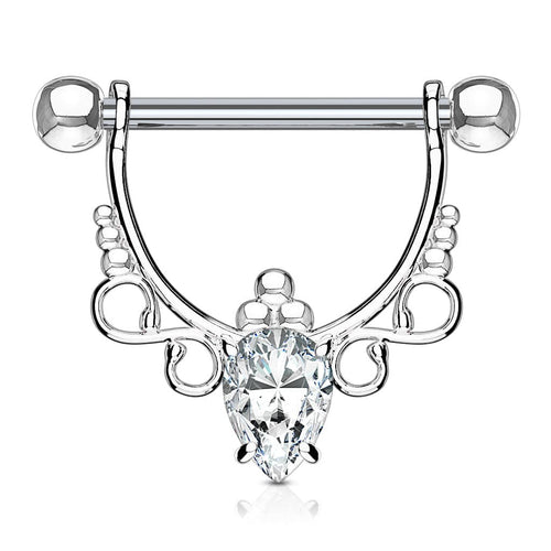316L Surgical Steel with White Pear CZ Dangle Nipple Ring Barbell