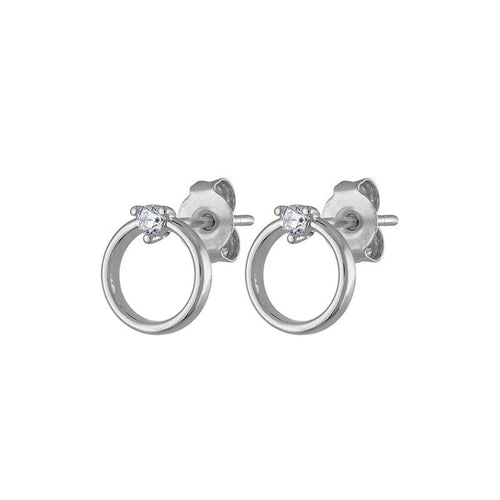 Pair Of 925 Sterling Silver Circle With White CZ Gem Minimal Stud Earrings