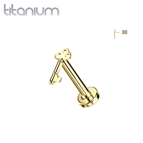 Implant Grade Titanium Gold PVD Key Push In Threadless Labret With Flat Back