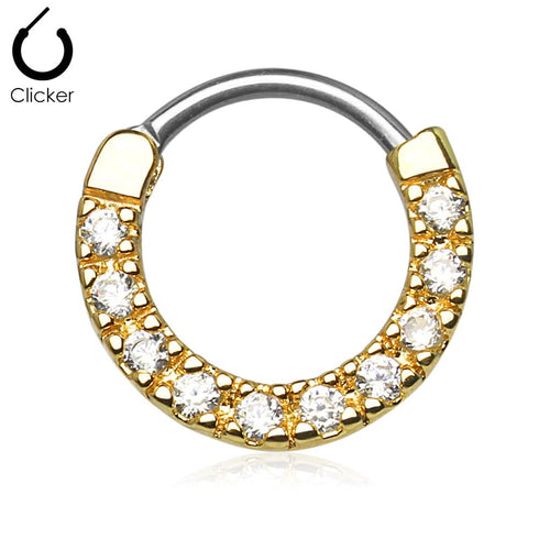 Gold Plated Surgical Steel White CZ Gem Septum Ring Clicker Hoop
