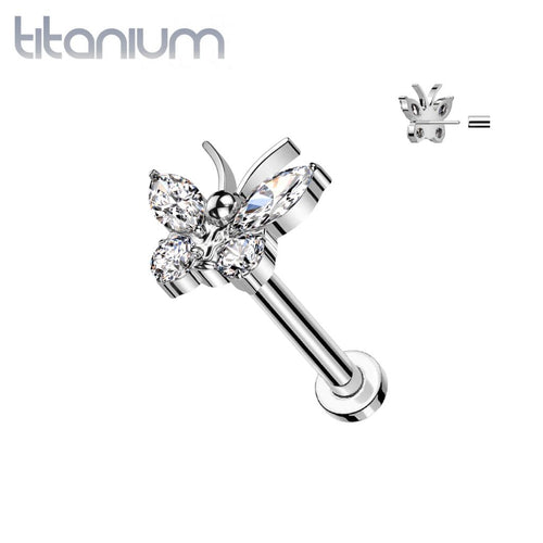 Implant Grade Titanium Large Vitrail Medium CZ Gem Butterfly Threadless Push In Labret