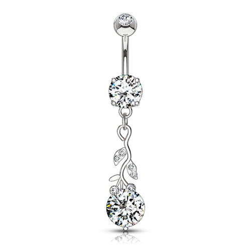 316L Surgical Steel White CZ Vine Dangle Belly Ring