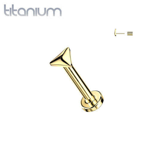 Implant Grade Titanium Gold PVD Minimal Triangle Push In Threadless Labret With Flat Back