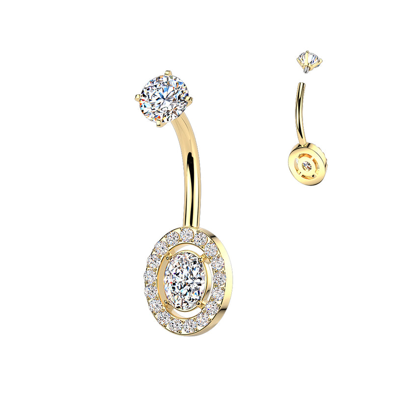 316L Surgical Steel Gold PVD White CZ Oval Pave Gem Internally Threaded Belly Ring - Pierced Universe