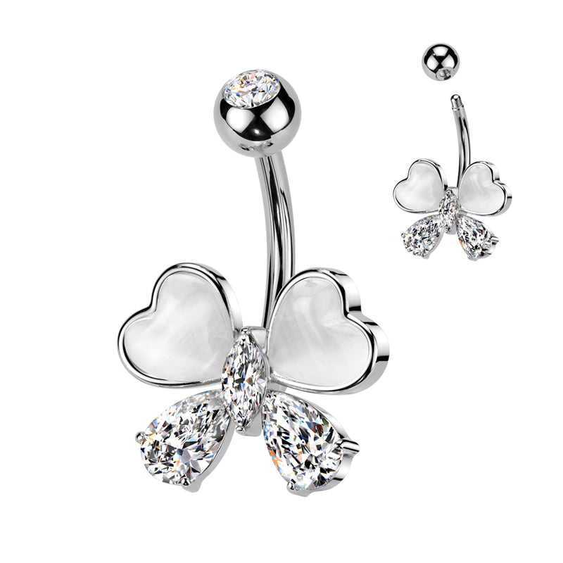316L Surgical Steel White CZ & Stone Bow Non Dangle Belly Ring - Pierced Universe