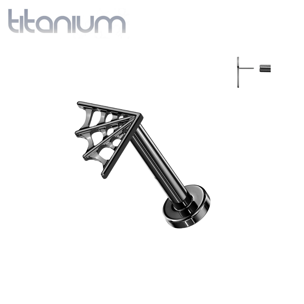 Implant Grade Titanium Black PVD Large Spider Web Push In Threadless Labret With Flat Back