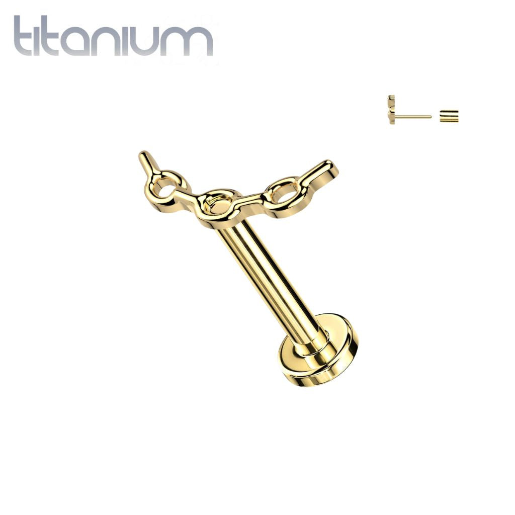 Implant Grade Titanium Gold PVD Curved Chain Link Push In Threadless Labret With Flat Back
