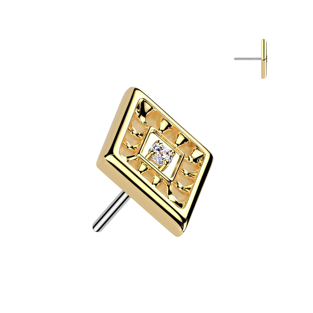 Implant Grade Titanium Gold PVD White CZ Evil Eye Diamond Shaped Threadless Labret With Flat Back