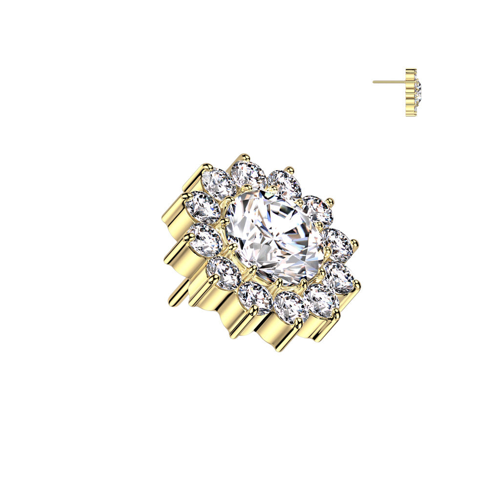 Implant Grade Titanium Gold PVD White CZ Large Sunflower Threadless Labret With Flat Back - Pierced Universe