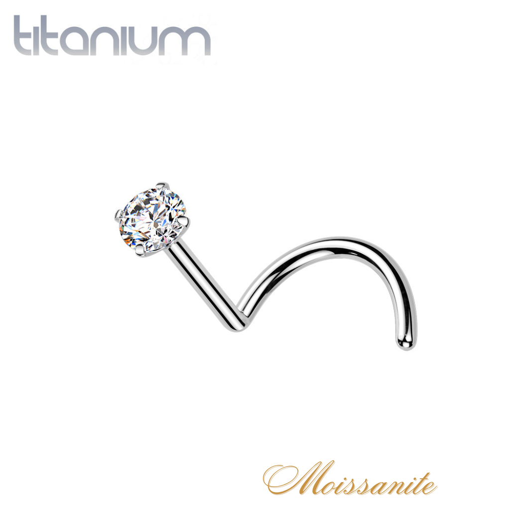 Implant Grade Titanium White CZ Moissanite Corkscrew Nose Ring - Pierced Universe