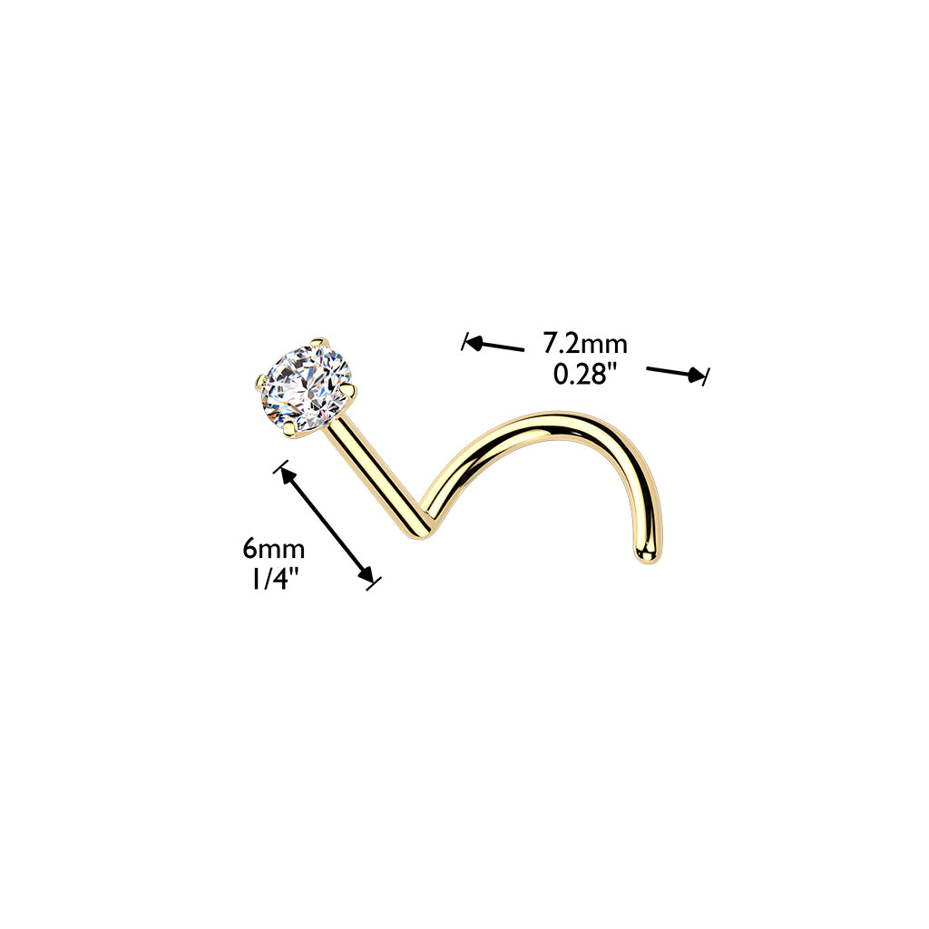 Implant Grade Titanium Gold PVD White CZ Moissanite Corkscrew Nose Ring - Pierced Universe
