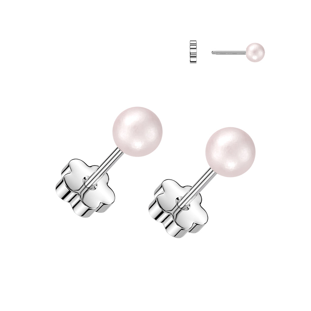 Pair of 316L Surgical Steel Pink Pearl Screw On Flat Back Earrings