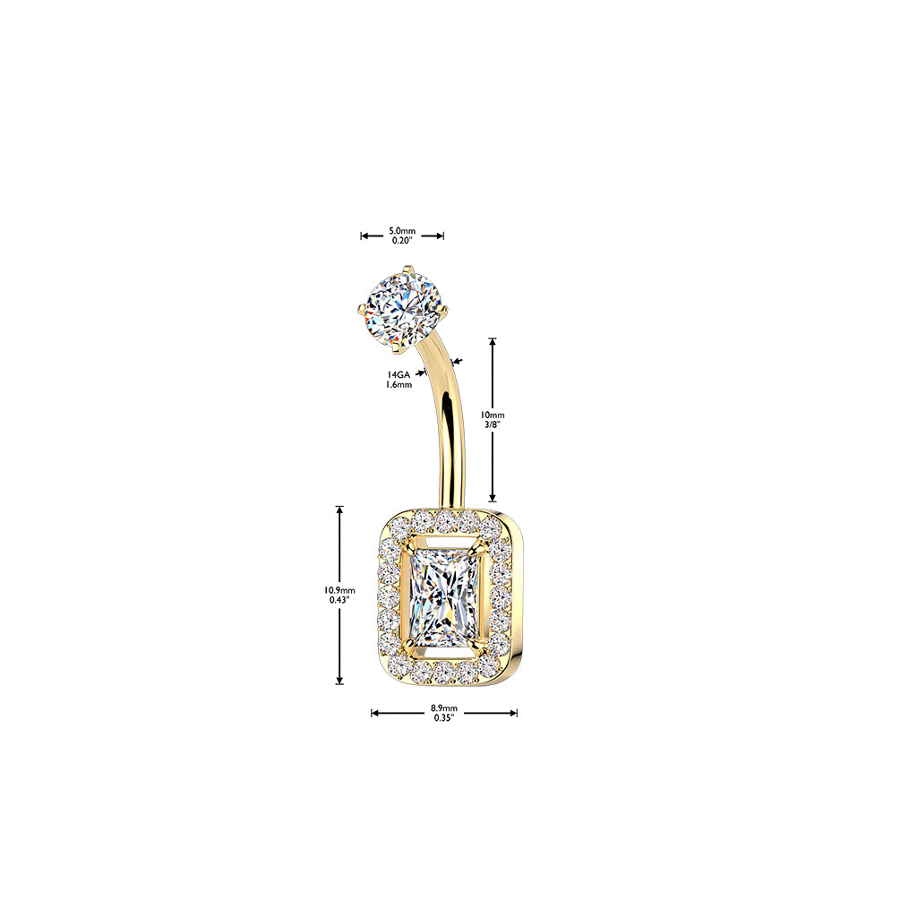 316L Surgical Steel Gold PVD White CZ Rectangle Pave Gem Internally Threaded Belly Ring - Pierced Universe