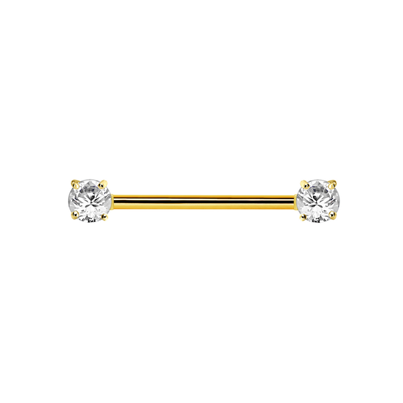 316L Surgical Steel Gold PVD White CZ Prong Straight Barbell Nipple Ring