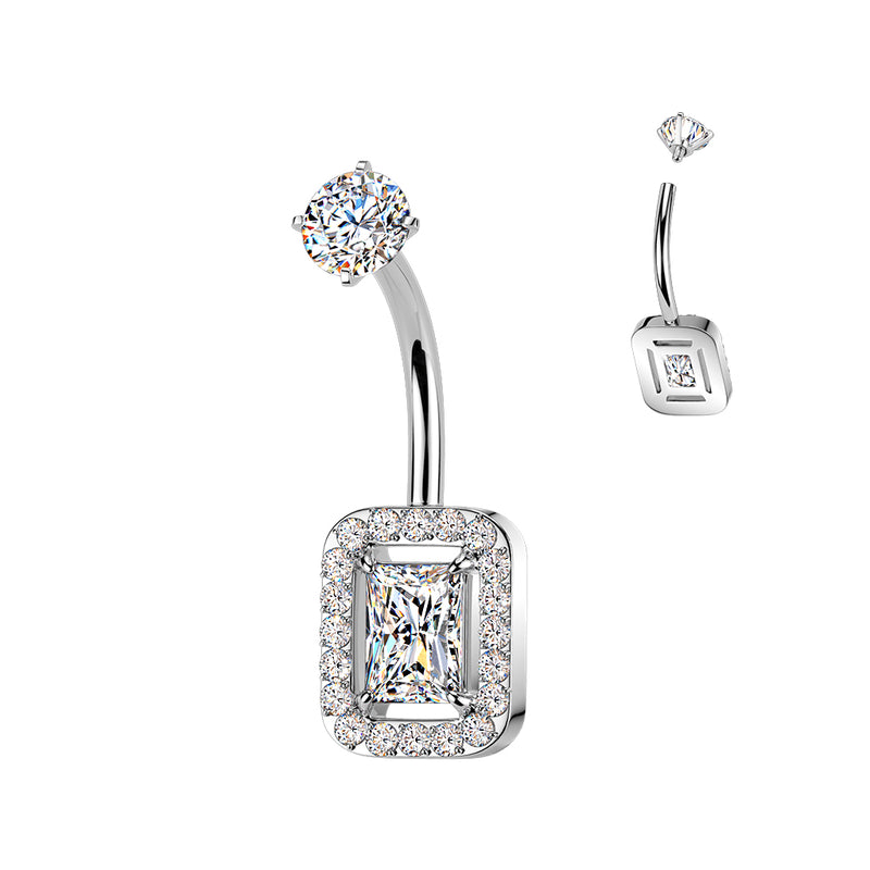 316L Surgical Steel White CZ Rectangle Pave Gem Internally Threaded Belly Ring - Pierced Universe