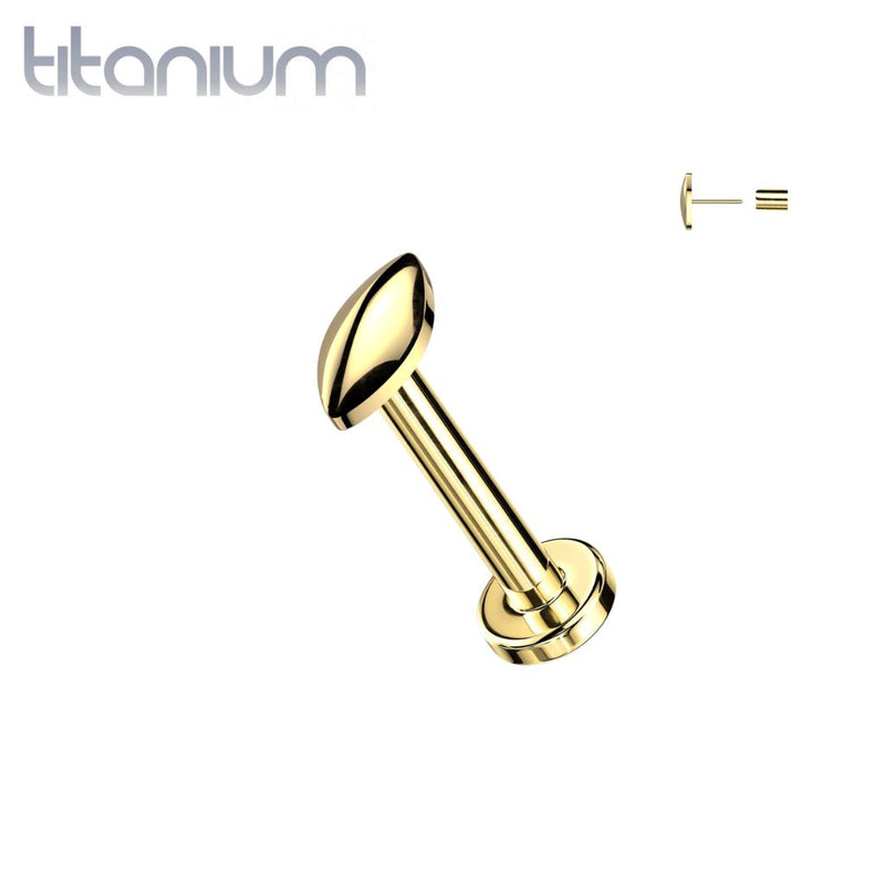 Implant Grade Titanium Gold PVD Minimal Marquise Push In Threadless Labret With Flat Back