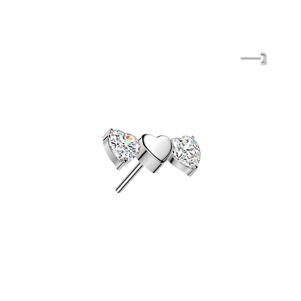 Implant Grade Titanium Triple Heart White CZ Bar Top Threadless Labret With Flat Back