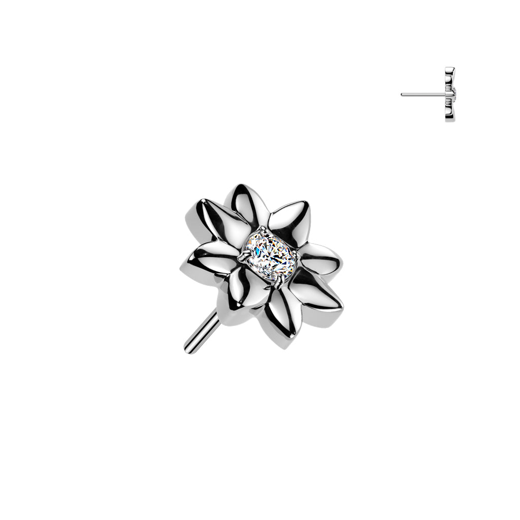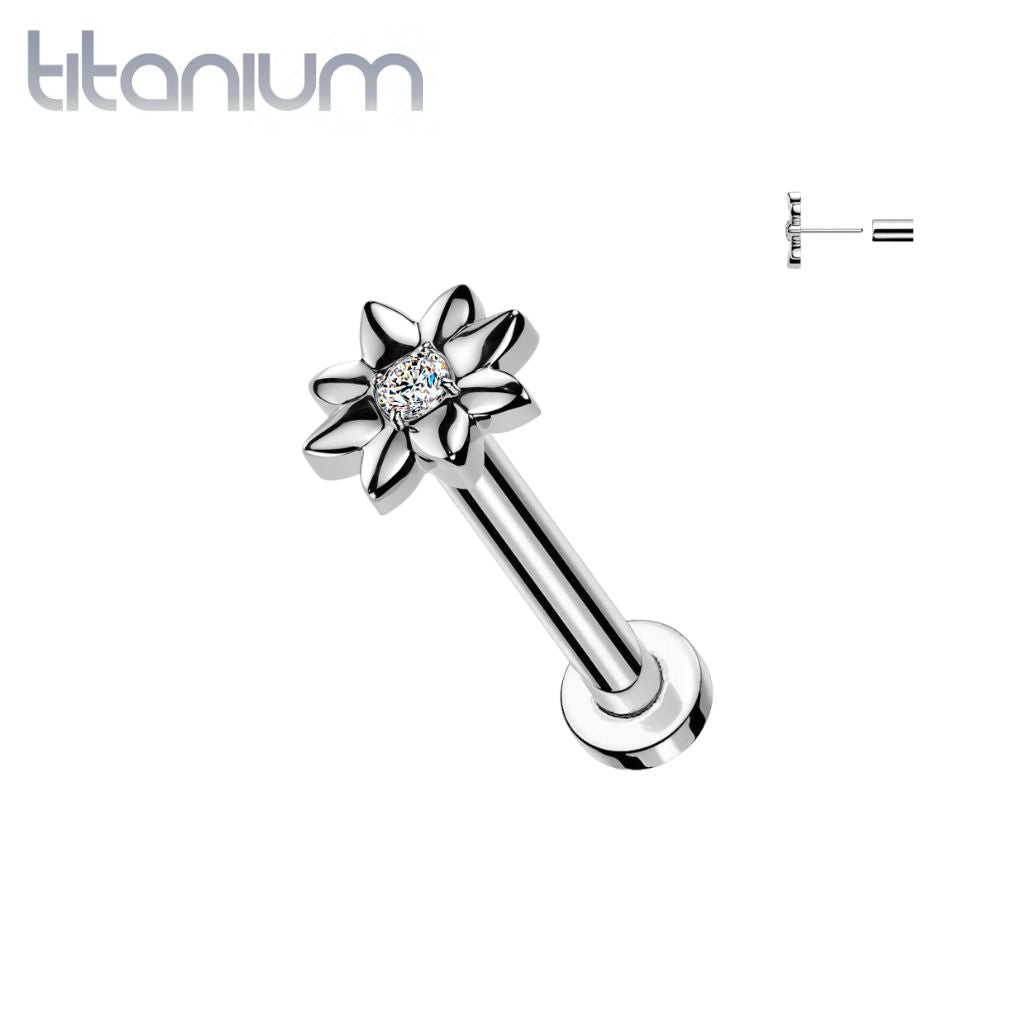 Implant Grade Titanium White CZ Center Large Flower Threadless Labret With Flat Back - Pierced Universe